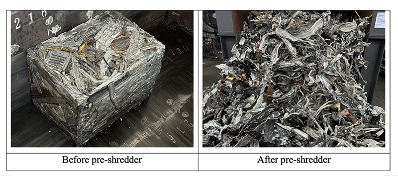 The pre-shredder has two rotating rotors driven by electrical motors with a ratio of 4:1.